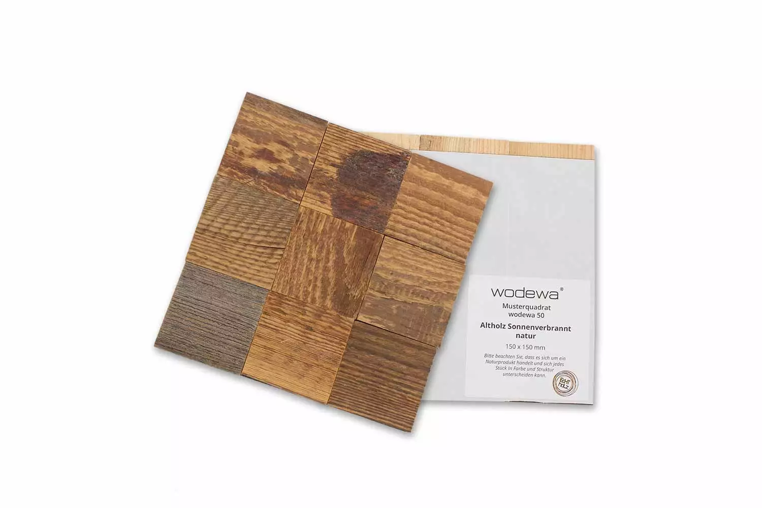 1x Matte mit 4 Quuadraten á 50 x 50mm Echtholz Musterquadrate