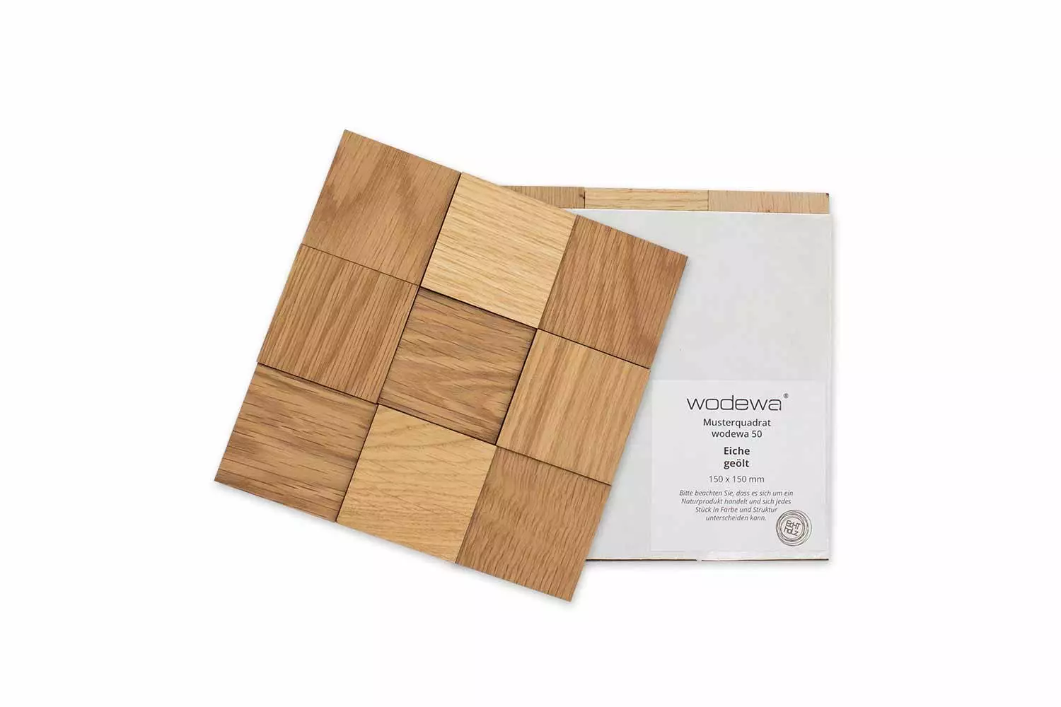 1x Matte mit 4 Quuadraten á 50 x 50mm Echtholz Musterquadrate