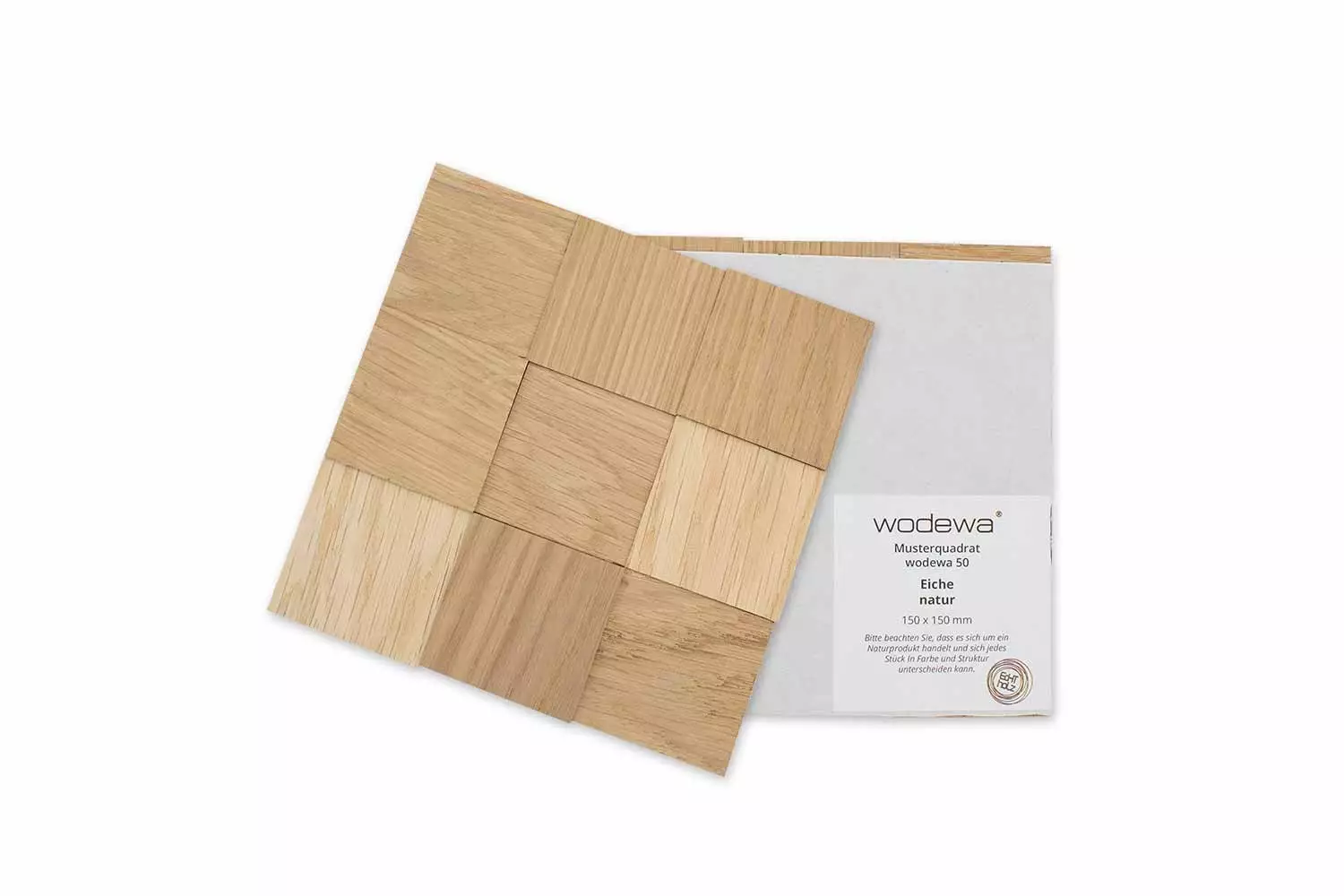 1x Matte mit 4 Quuadraten á 50 x 50mm Echtholz Musterquadrate